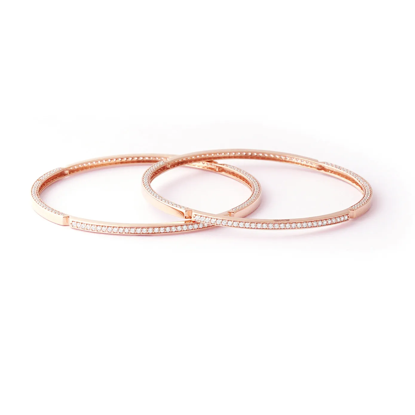 Everyday look to match your work outfit or a dinner date, this bangles are the perfect match for all your outfits. A pretty rim of 18K Rose Gold, studded with zircons around.