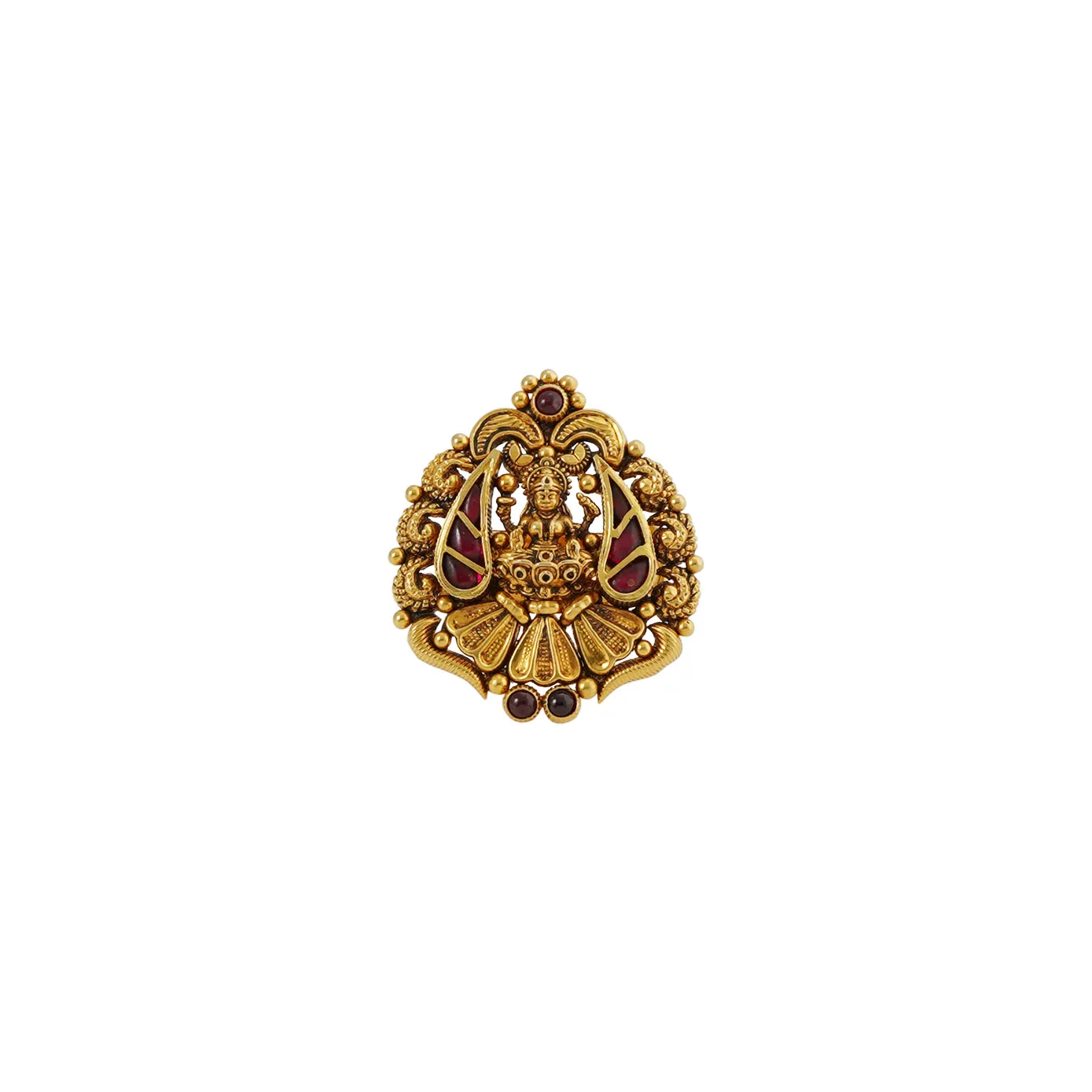 Just a finger ring with lakshmi seated on kamala hastham which is intricately designed with ultimate elegance. This proves that a single ring is enough to glow in your ethnic outfits.