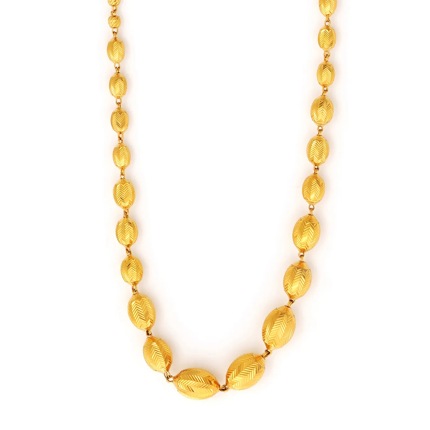 This exquisite piece of arrow textured multi sized gold beads will sure enthralls your fashionable look and matches all your trendy outfits specially designed on 22k gold.