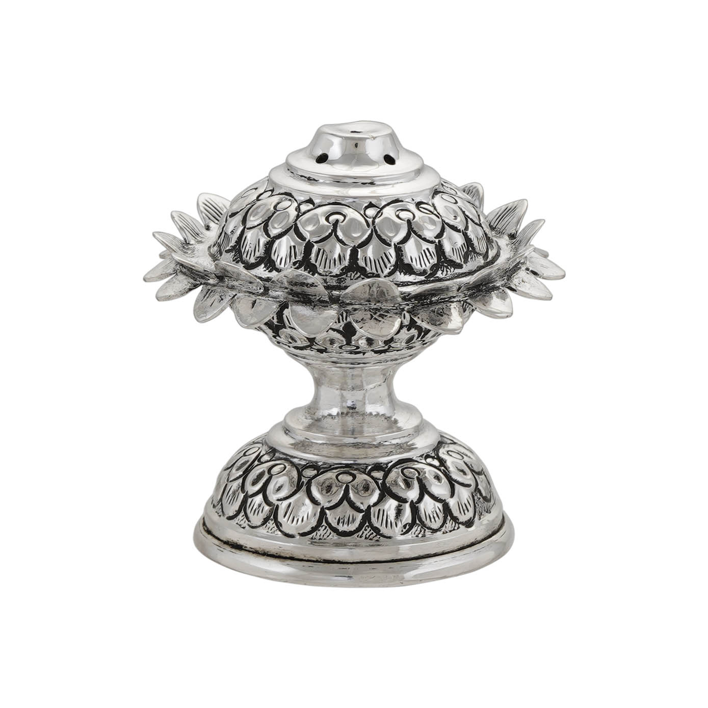 An unique antique agarbathi stand with beautiful florets surrounding the central dome with holes to hold the incense sticks headed on the carved floral padham with antique finish.
