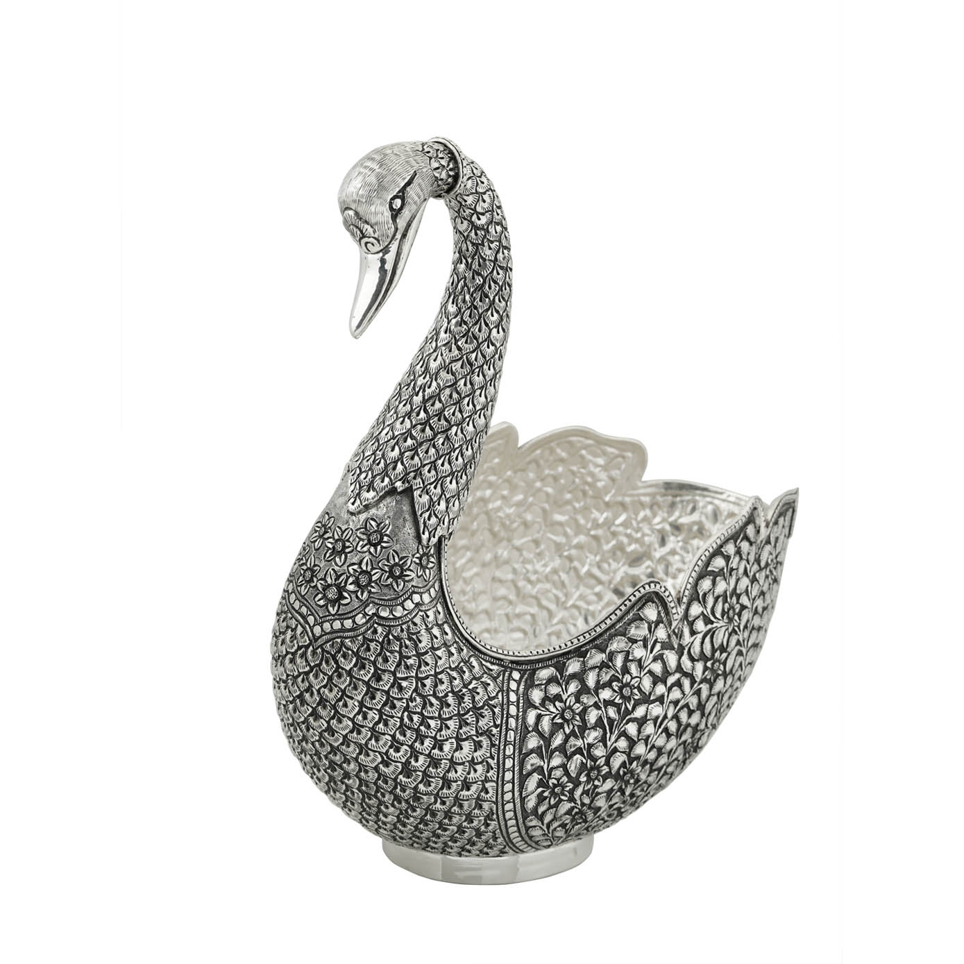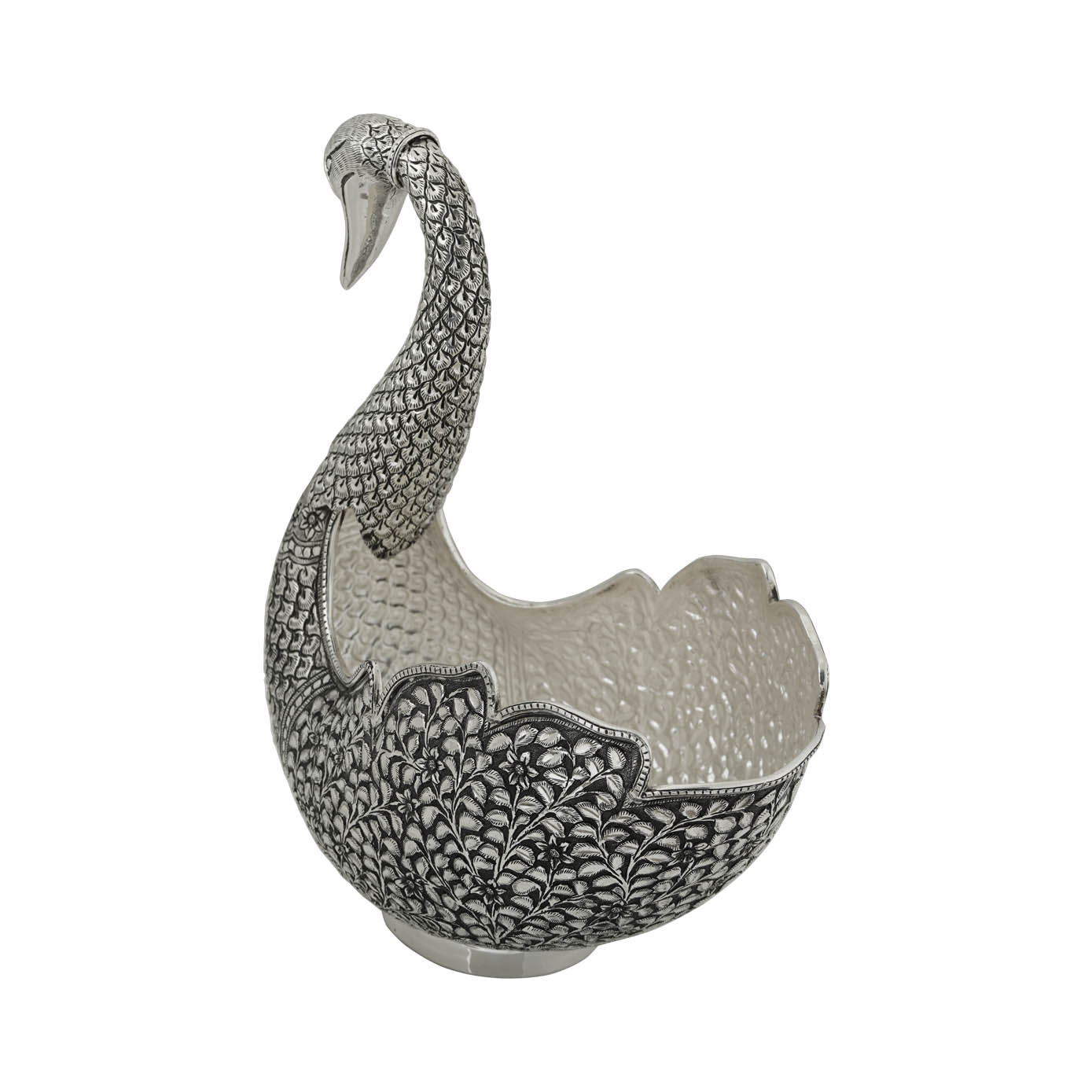 A beauty to adore your house with excellent carvings on it and even the curve of the beautiful swan’s neck and wings with more detailing. The neck is designed with feathery details with a node on its neck and its body with wide opening to hold as much fruits it can and it leads to be quite spectacular when it lands to your dining table.