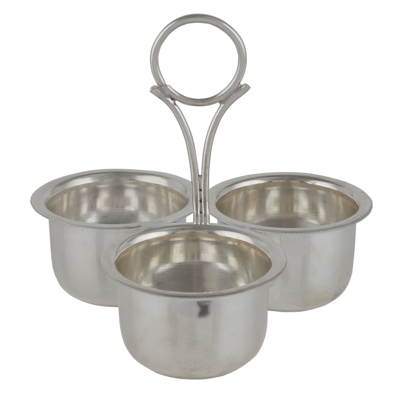 A triple cup Kothu Kinnam to make your auspicious beginnings more successful with all divine energy stored in the form of Kum Kum, Turmeric and Chandhan designed in a traditional model.
