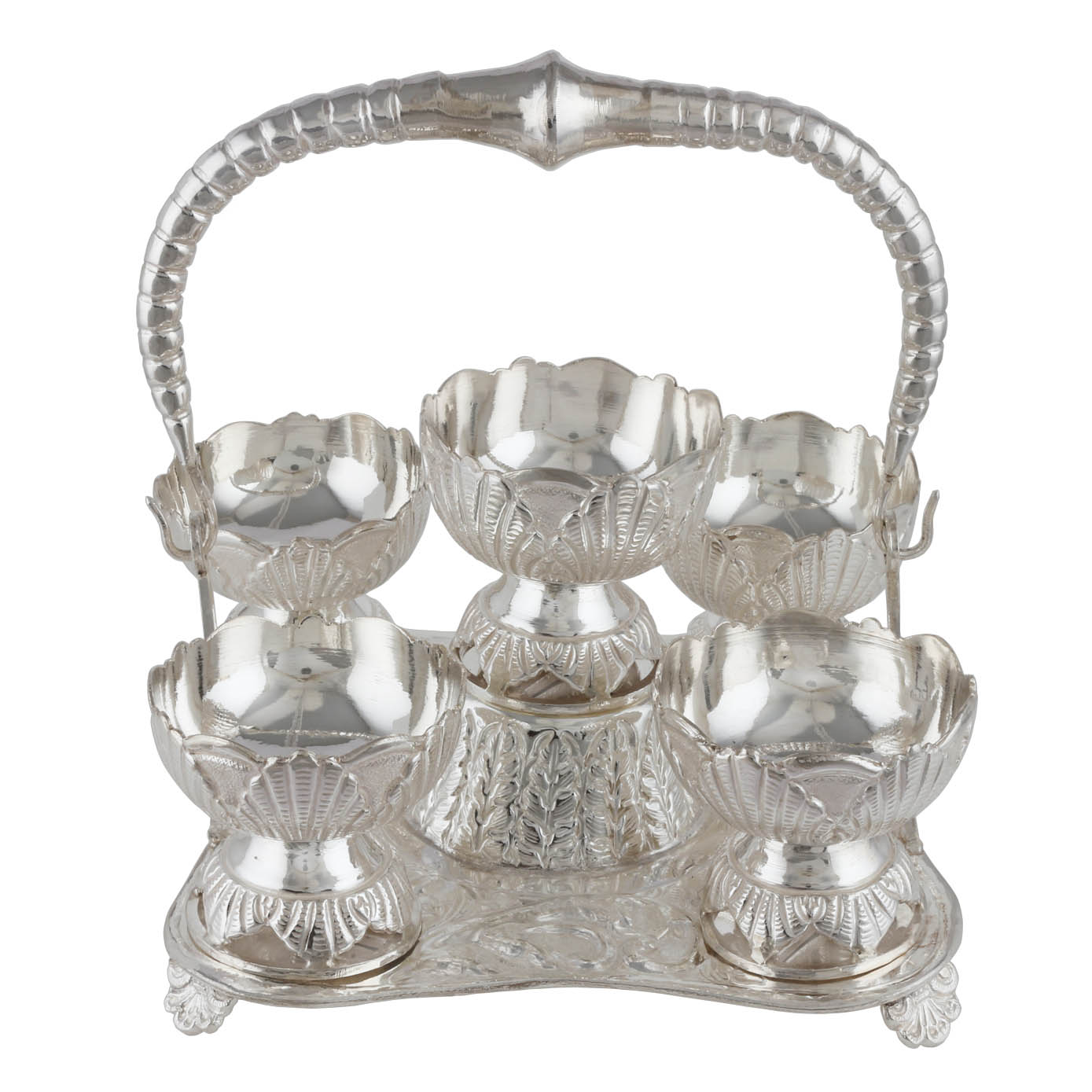 Traditional opulence appears in your holy pooja, with this exclusive radiant collection. This peculiar multi-purpose pooja bowl can be used as haldi-chandhan bowl or a prashadh bowl. For the ones searching to add beauty to the divinity in your home sweet home.