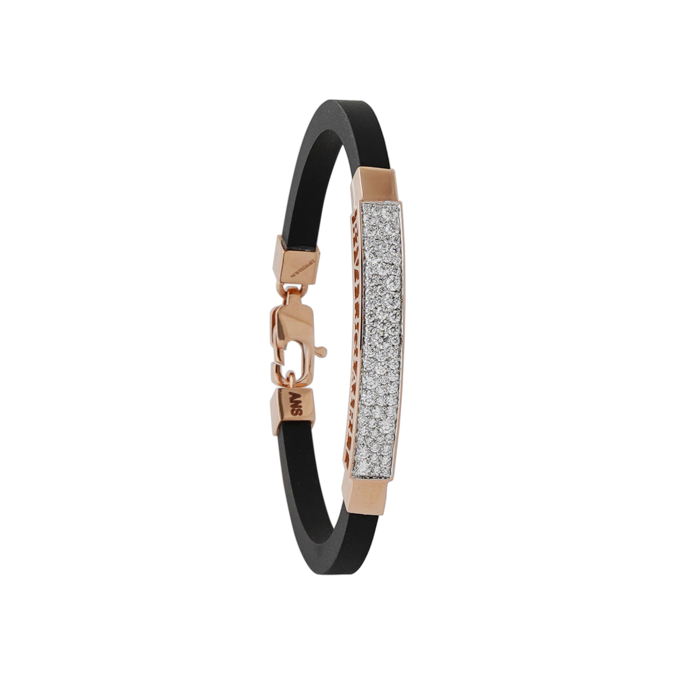 A trendy Diamond Bracelet with complete elegance with the cluster of Diamonds arranged on it on a frame of Rose Gold, with black band and Lobster Claw Clasp to finish its look. Don’t you think this will lead you as a person with high fashion sense.