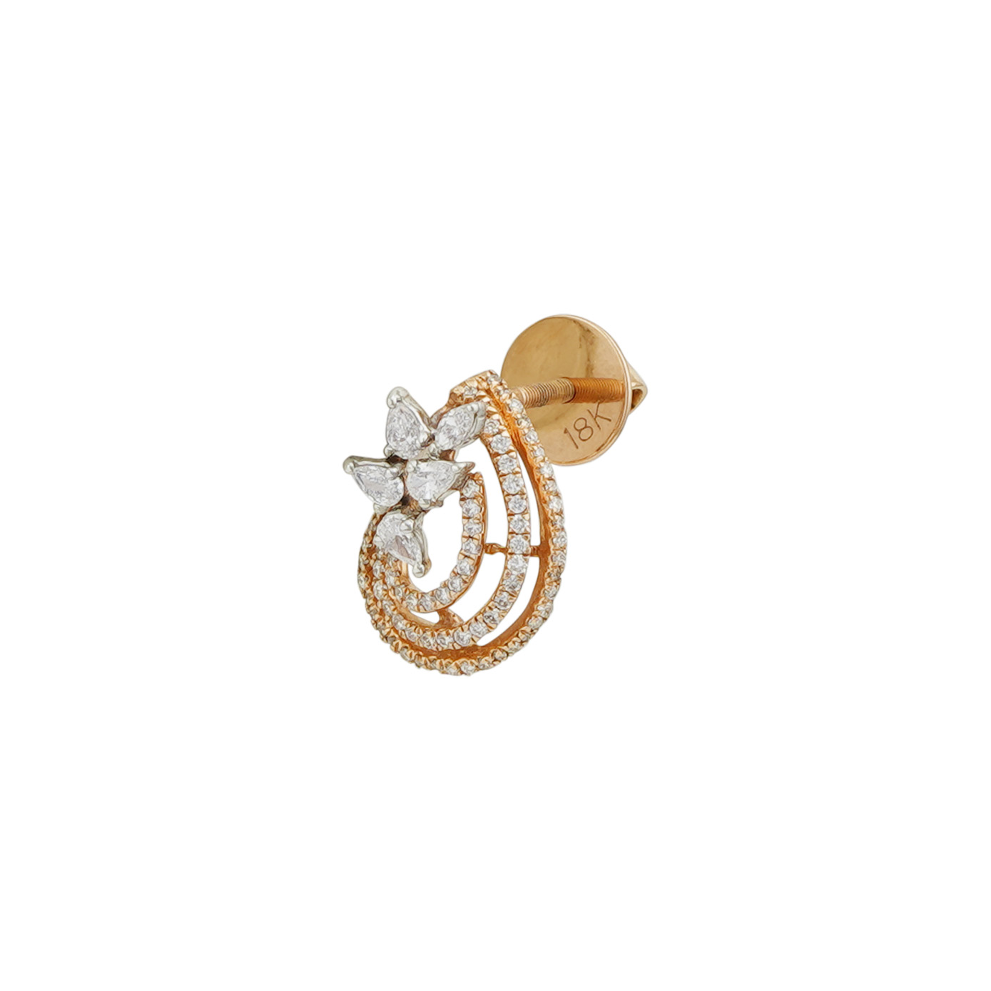 This stud features a brilliant-cut, high-quality diamond meticulously set in a precious metal of 18kt Rose gold. The design can fit easily to all your outfits from casual to formal, adding a touch of radiant glamour to your look through its peculiar pattern.