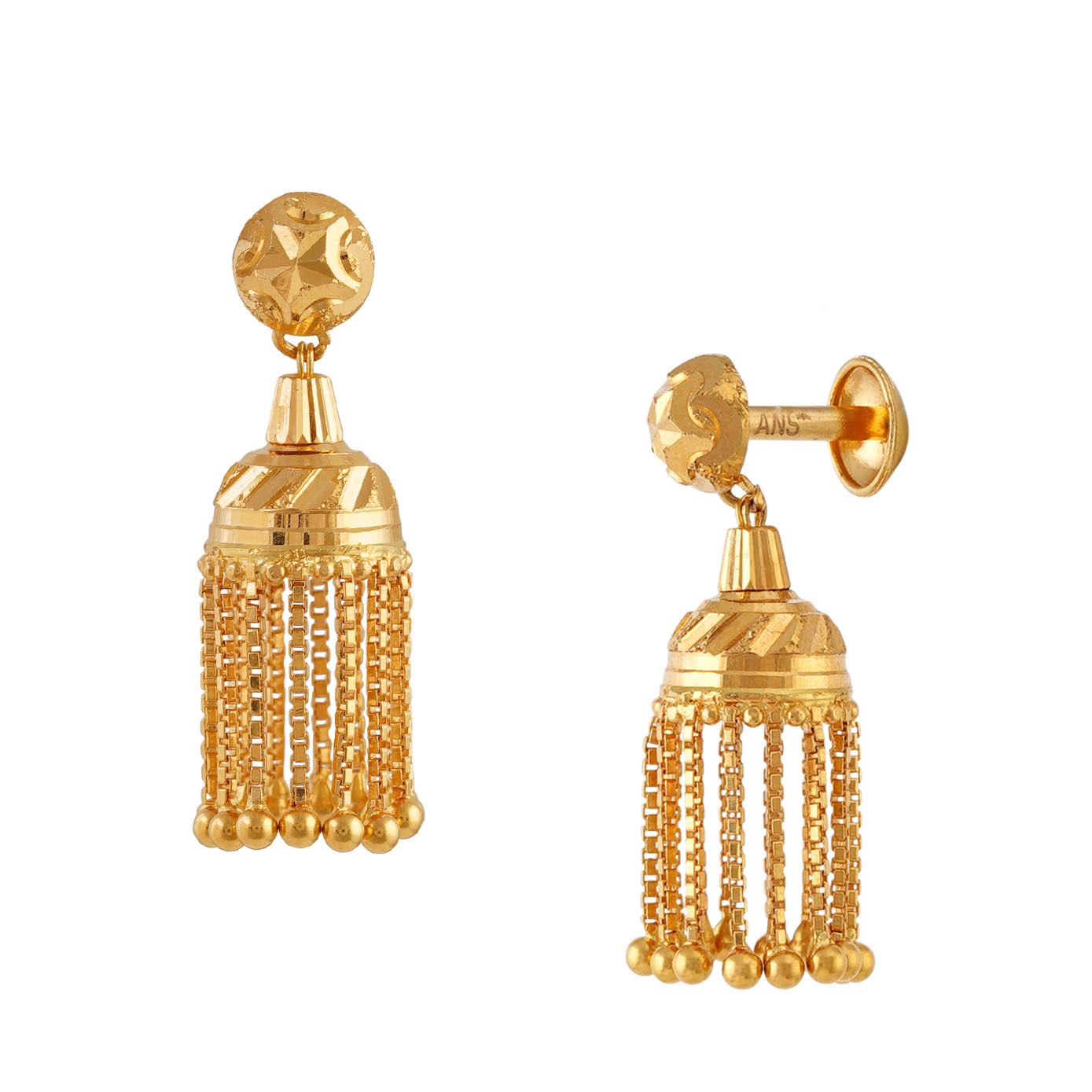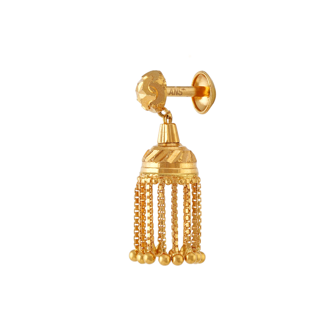 "Rediscover timeless beauty with our Classic Jumkka, featuring a plain bud ear top elegantly adorned with strings of delicate chains, finished with graceful gold beads. This exquisite piece pays homage to traditional elegance while adding a touch of sophistication to your ensemble. Embrace the allure of classic craftsmanship and style with this stunning accessory."