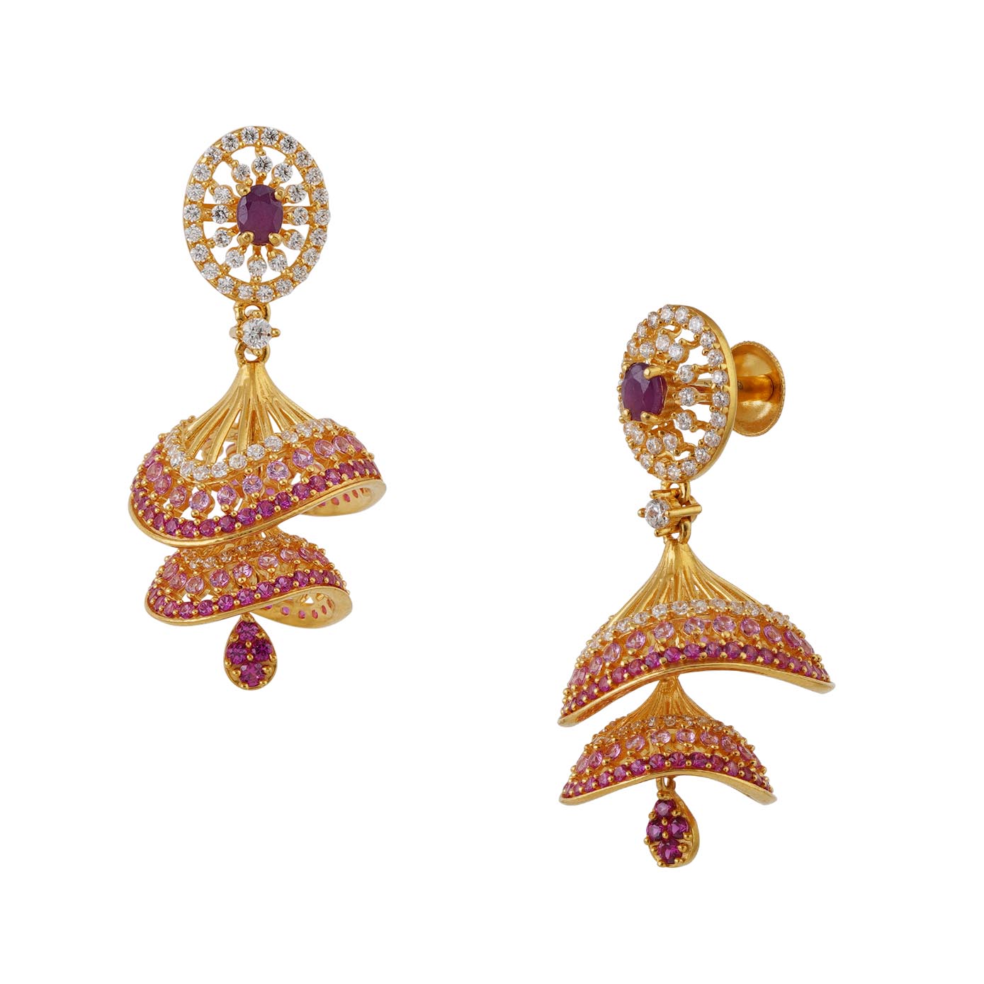 "Elevate your elegance with our double-layered Jumkki earrings, adorned with sparkling zircons in a captivating sequence of beautiful red shades. These earrings are a perfect blend of tradition and modern style, adding a touch of glamour to your every look. Embrace the allure of radiant beauty with this exquisite accessory."