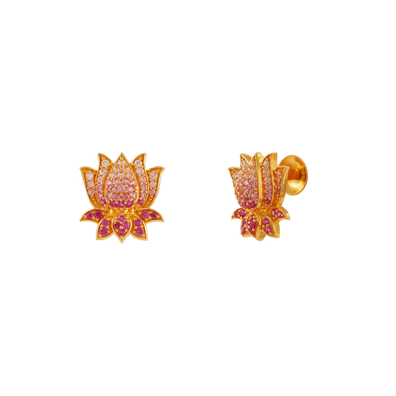 Adorn your ears with the exquisite beauty of these lotus stud earrings, where each petal is adorned with a spectrum of hues of pink stones. The delicate and intricate design captures the essence of a blooming lotus, creating a harmonious blend of nature-inspired elegance and vibrant sophistication. These earrings are a celebration of femininity and grace, making them a perfect accessory to add a touch of timeless charm and subtle glamour to any look.