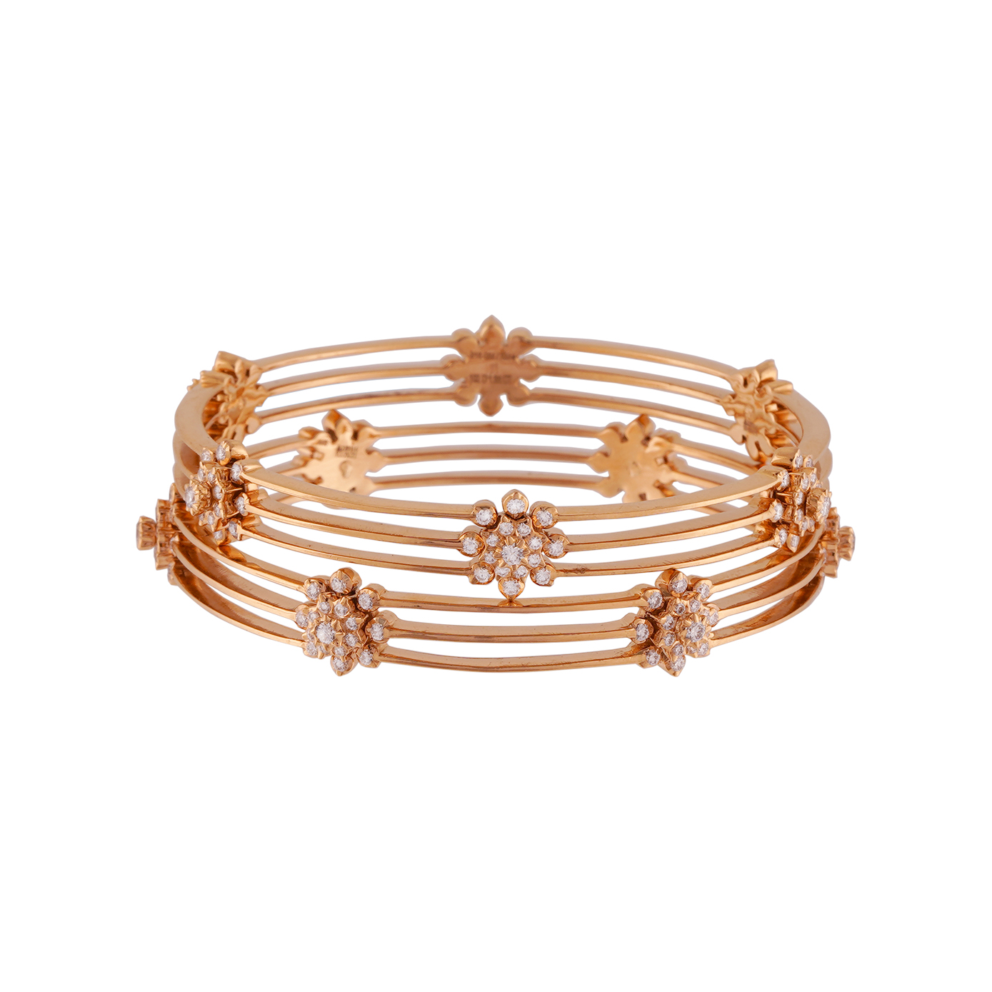 As a pair, these bangles resonate with the duality of grace and strength, a reflection of the wearer's inherent beauty and resilience. Let the lustrous rose gold caress your wrists, while the diamonds radiate a celestial glow, embracing you in an ethereal tapestry of luxury and refinement. Elevate your style with this union of craftsmanship and opulence—a timeless celebration of femininity and the enduring allure of diamonds in a close setting. Indulge in the extraordinary, as these bangles whisper tales of elegance and sophistication on each graceful curve of your wrists.