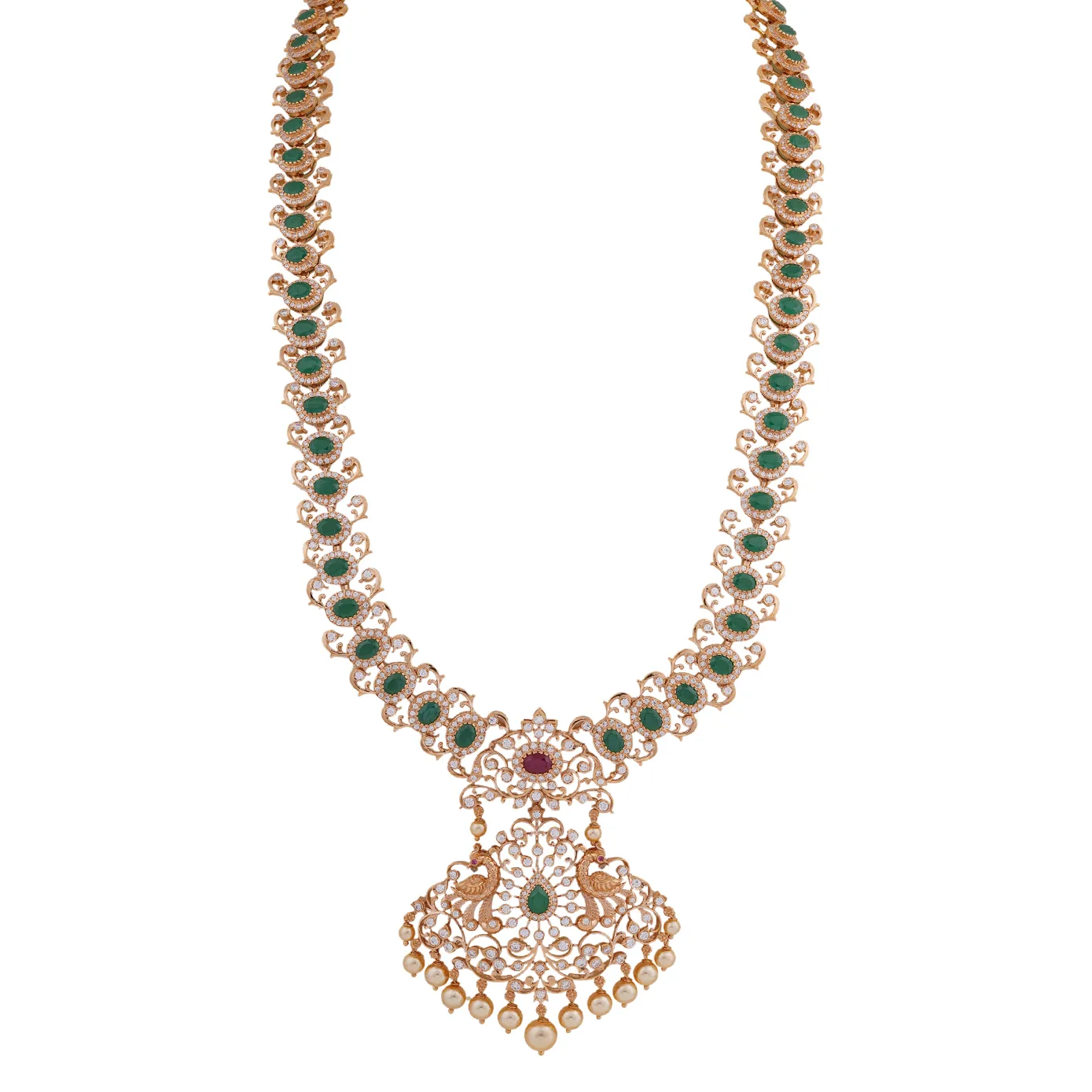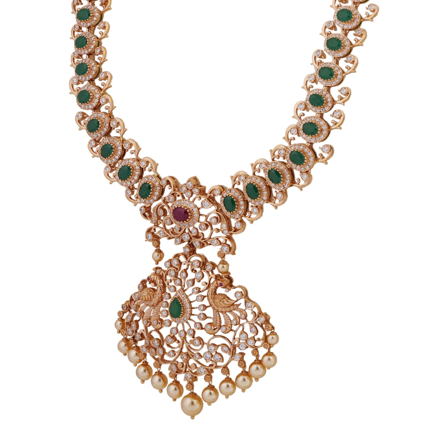 Goddess Lakshmi, the epitome of affluence and prosperity, embodies the very essence of opulence and abundance. This antique gold haram necklace, crafted with exquisite precision and artistry, goes beyond serving as a mere conduit for her blessings. It also weaves a mesmerizing spell over anyone who beholds it, with its resplendent beauty leaving an indelible impression. In wearing this piece, you not only carry the promise of wealth and prosperity symbolized by Lakshmi but also become a living embodiment of that promise.