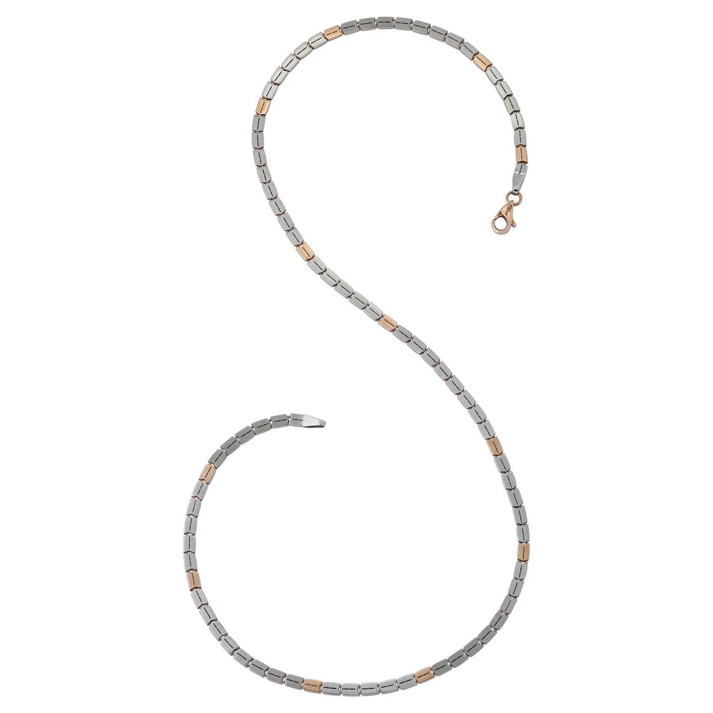 The superb arrow headed design in platinum and 18k gold strung together and inter locked with each other. This glossy polish finish gives the shine and grace required for your outfit.