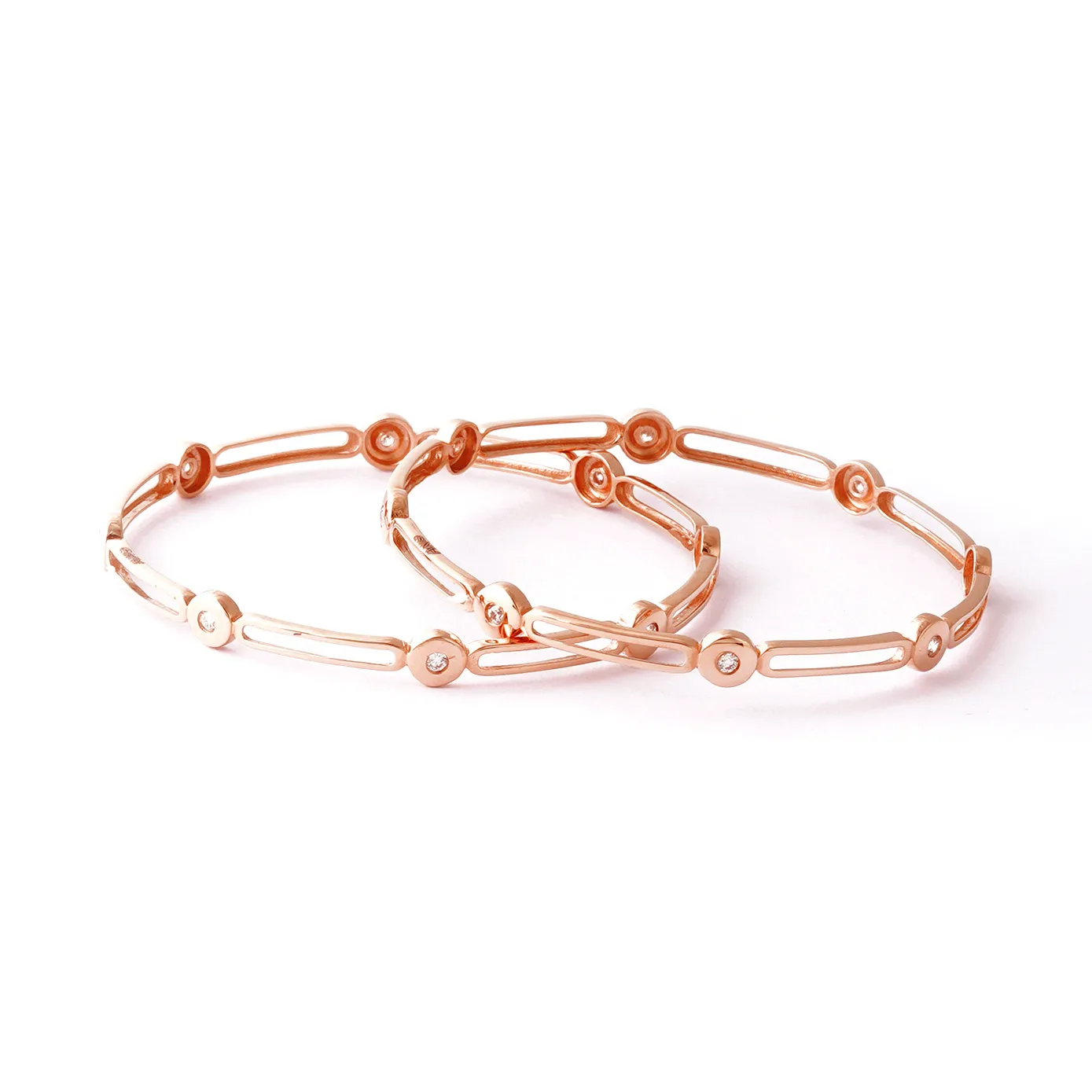 The simplicity of Rose Gold and shimmering zircons will make this unique piece of jewelry to be a center of attraction where ever you go.