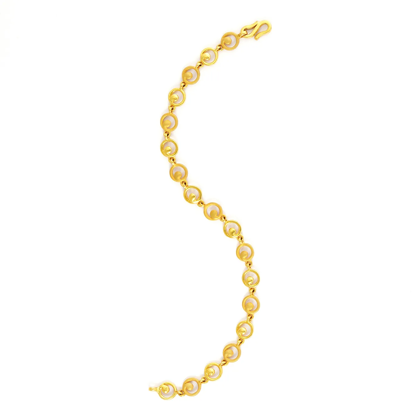 A 22k gold bracelet with circles designed in a contemporary style in each and every milli length to satiate your love for whimsy style all along.