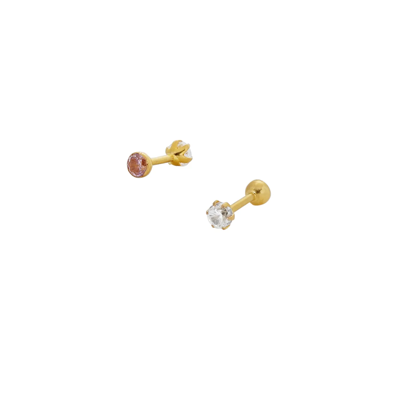 A tiny magic in the form of double sided earring with white and pink stones studded on 22k gold will be an enthralling beauty.