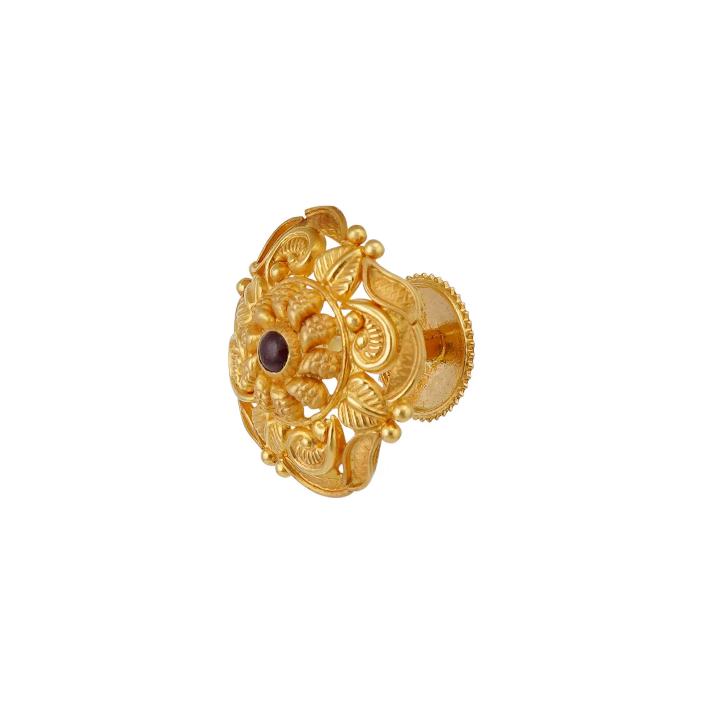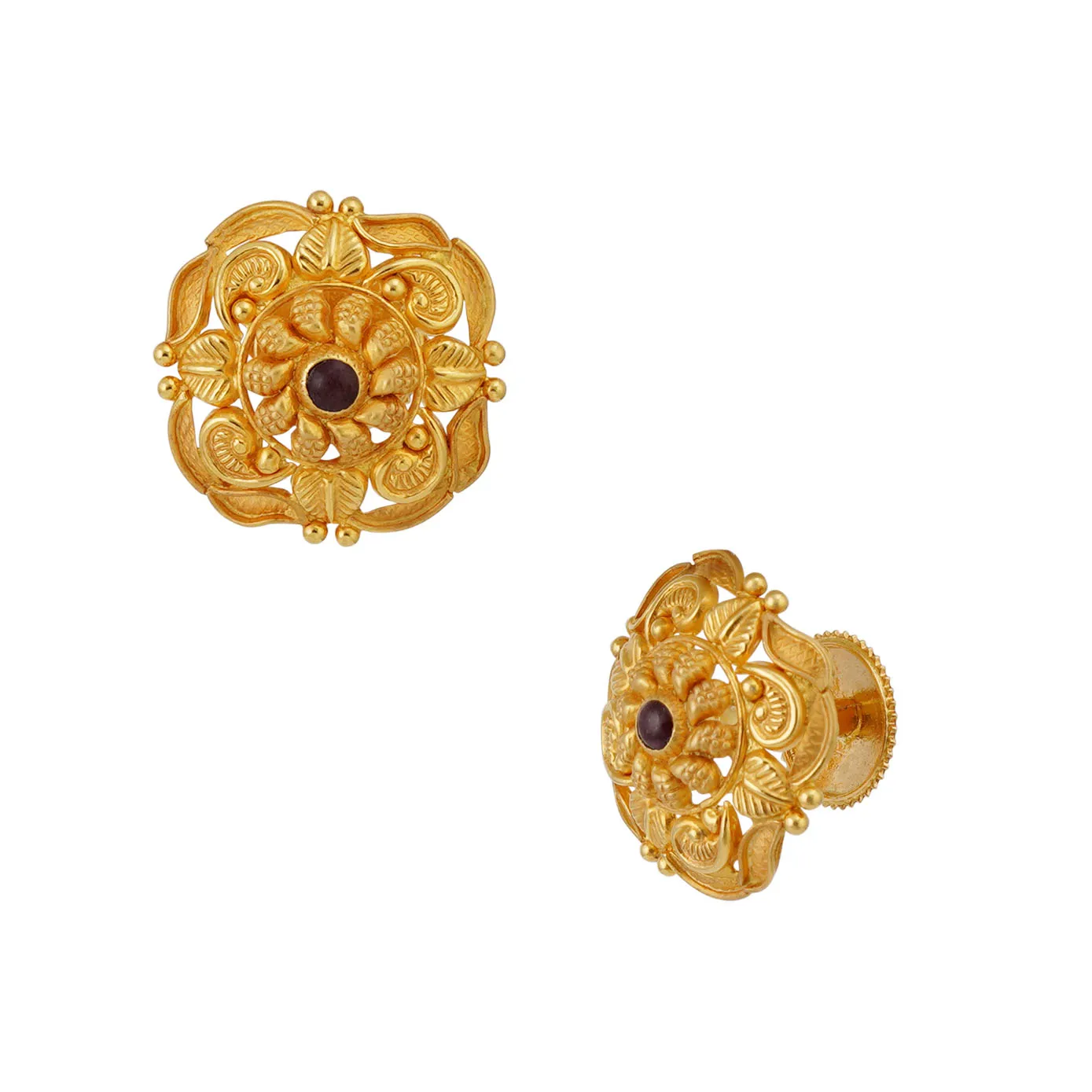A classy contemporary 22k gold earring is crafted to step up your ethnic style with this intricately details and grooved with floral, leaf and paisley patterns all around in square shape.