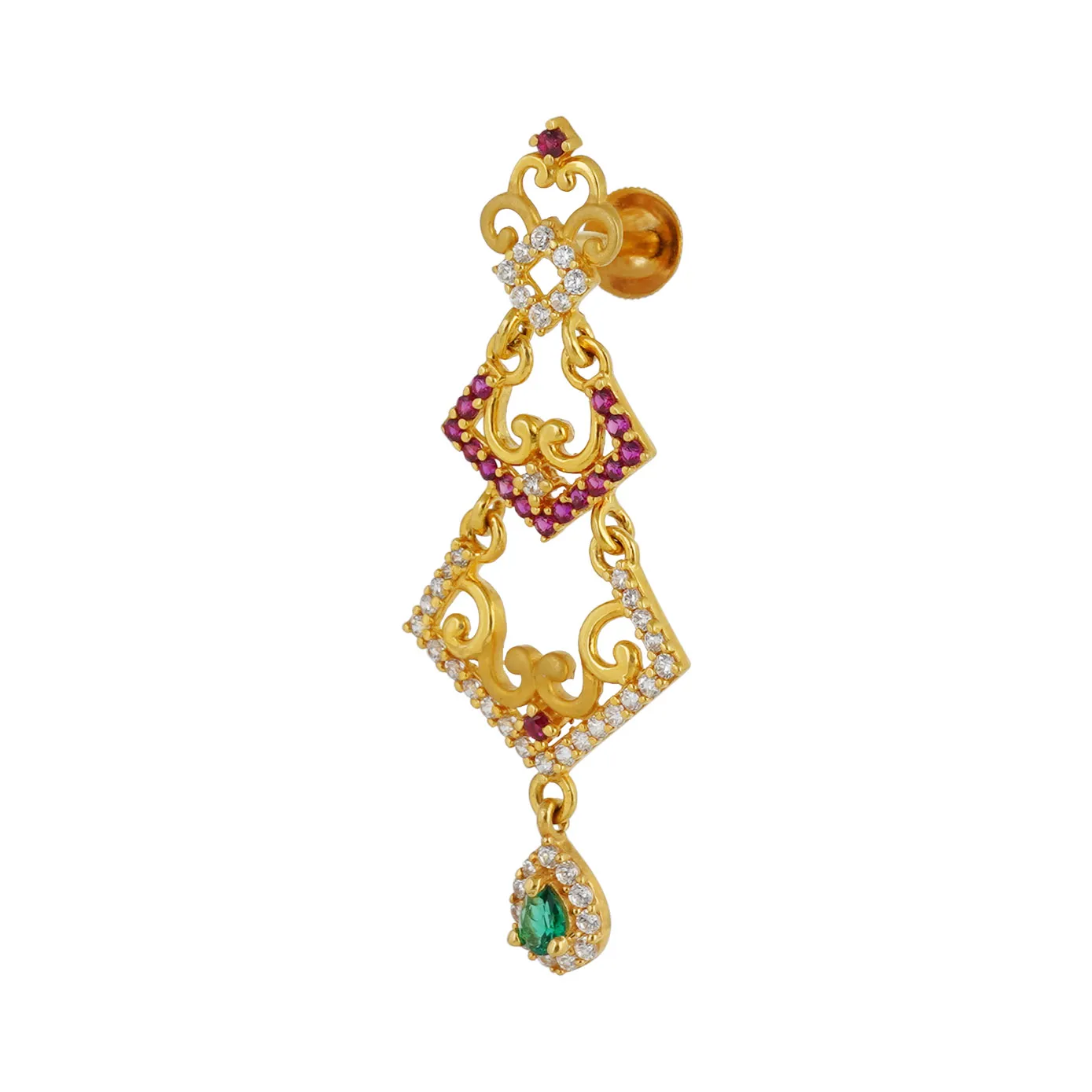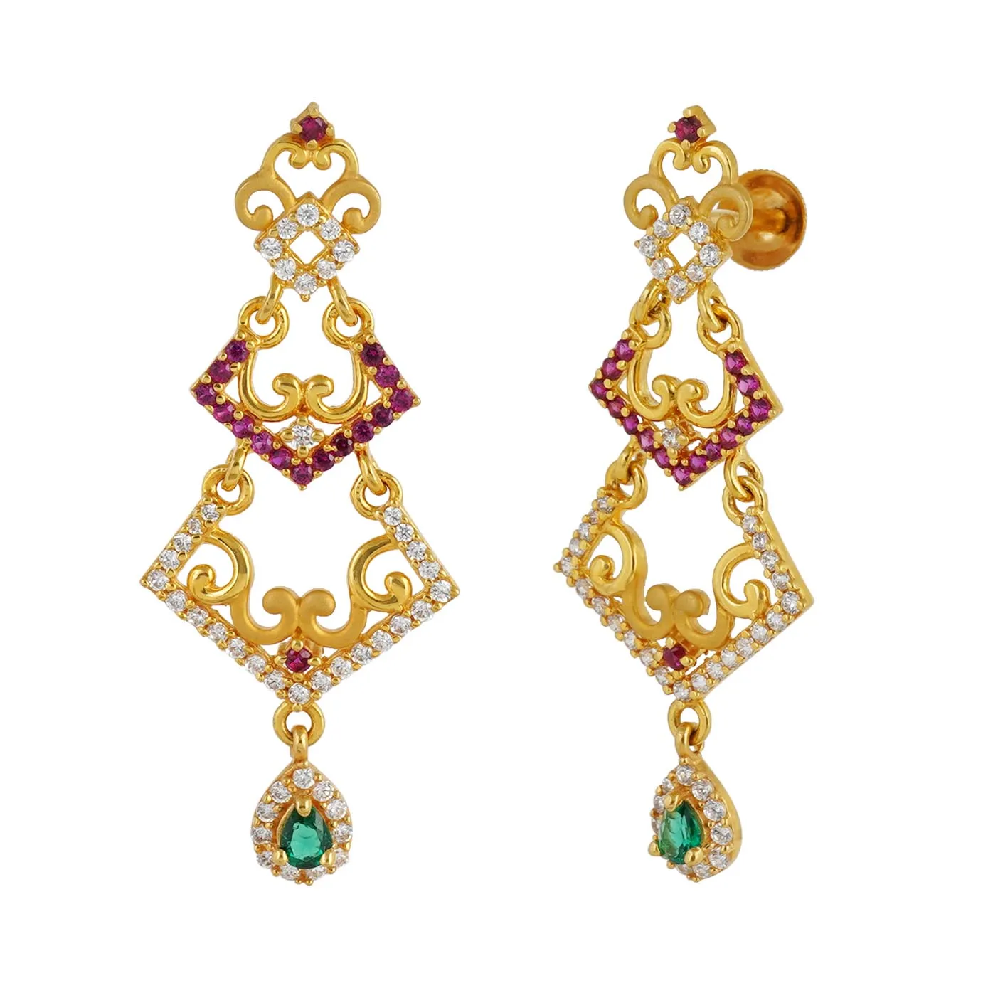 A beautiful diamond shaped earrings with floral filigreed top with three different colors to make the earrings you wear in a more unique way.