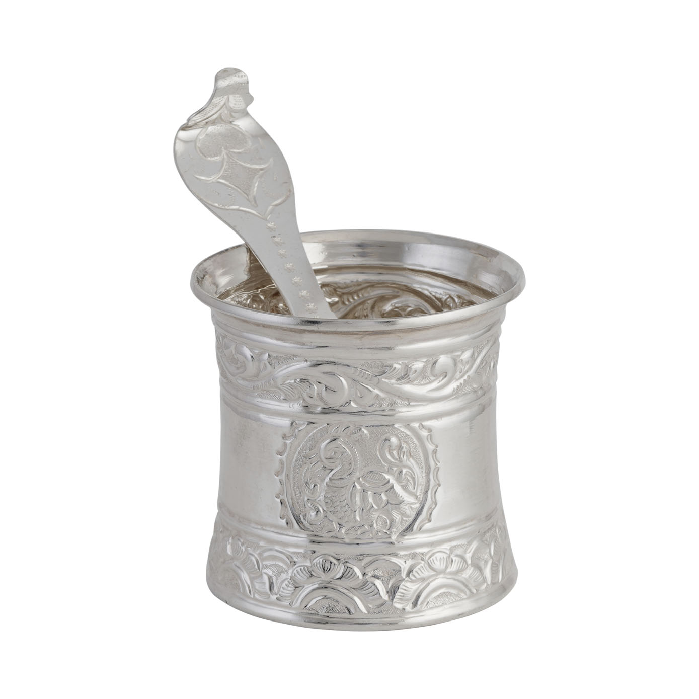 The Nagas Panchapatram and Uthrani inscribed with beautiful peacock model and floral borders on both ends of the panchaptram and the uthrani is designed in a serpent model.