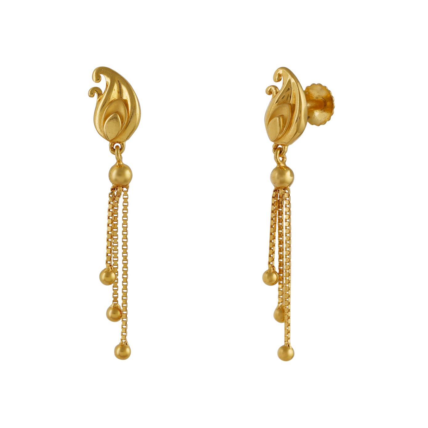 Simplicity meets style in these chic drop earrings. The understated elegance of a paisley motif stud takes center stage, exuding classic charm. Beneath, three cascading layers of box chain drops create a graceful and modern accent. These earrings are the perfect choice for those who appreciate minimalistic beauty with a contemporary twist, making them a versatile addition to any look.