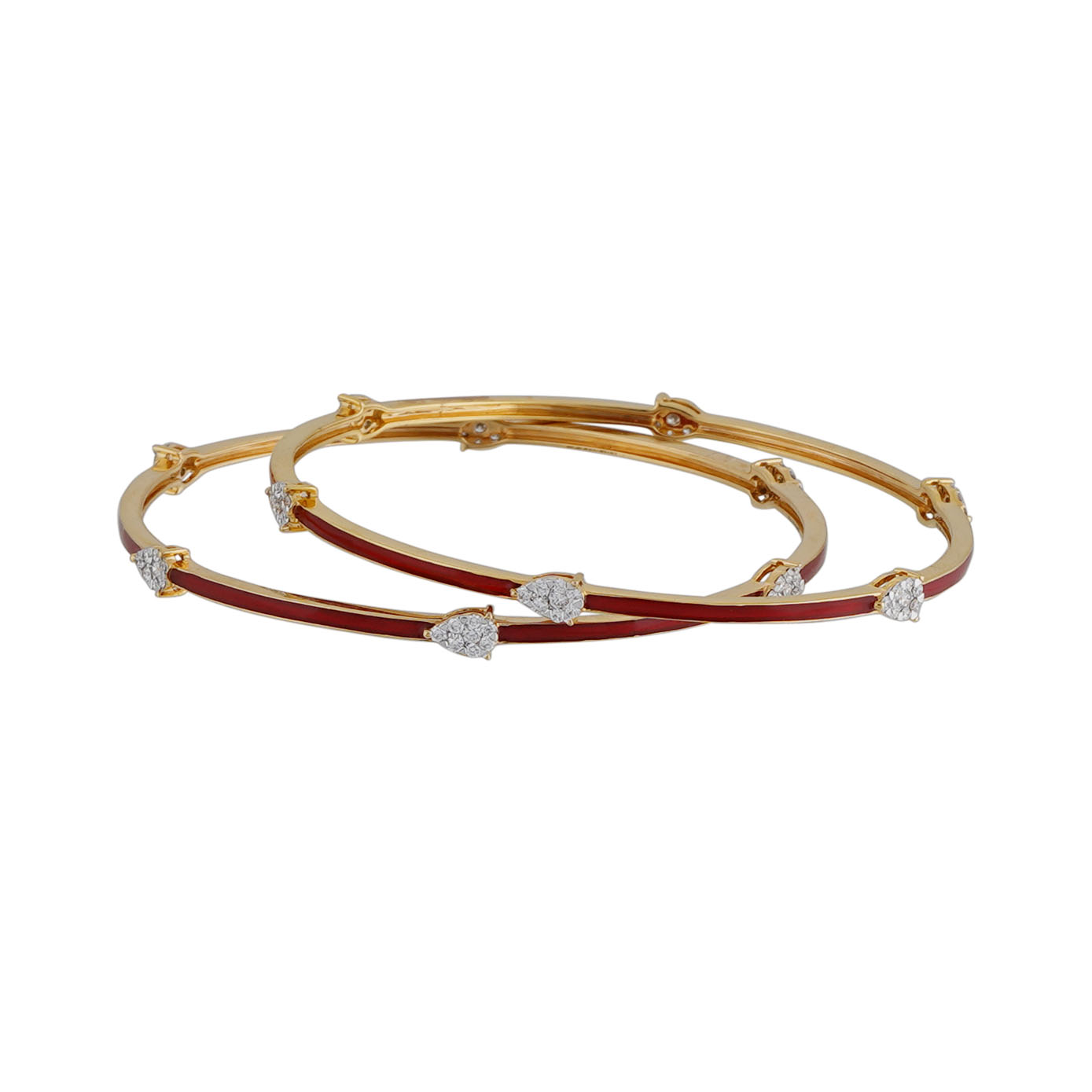 Elevate your elegance with our Diamond Open Setting Bangle—a masterpiece that seamlessly blends sophistication with contemporary allure. Delicately crafted with a refined open setting, this bangle showcases the brilliance of diamonds, allowing their radiance to dance freely on your wrist. The enchantment continues as a tasteful rim of enamel encircles the diamonds, adding a touch of color and a dash of modern flair. With a design that speaks volumes in subtlety, this bangle is more than an accessory; it's a statement of refined style, ensuring the wearer an effortlessly elegant and sophisticated look that needs no further embellishment.