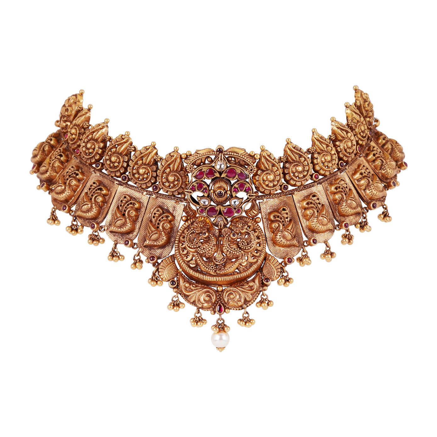Avis - Peacock and Mango Motif Gold Choker