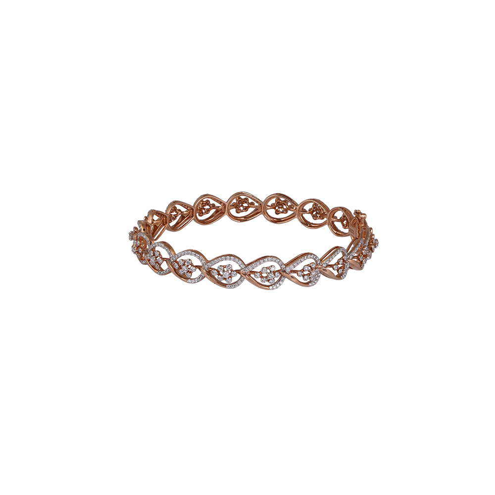 Diamond Bangle in 18kt Open Setting – Fancy Flower Vine Adorn your wrists with elegance through this 18kt diamond bangle, crafted in an open setting for maximum brilliance. Designed as a graceful vine of fancy floral motifs, it wraps around your hands like a delicate bloom, radiating sparkle with every move. A perfect blend of sophistication and charm, this bangle is ideal for both festive occasions and everyday luxury.