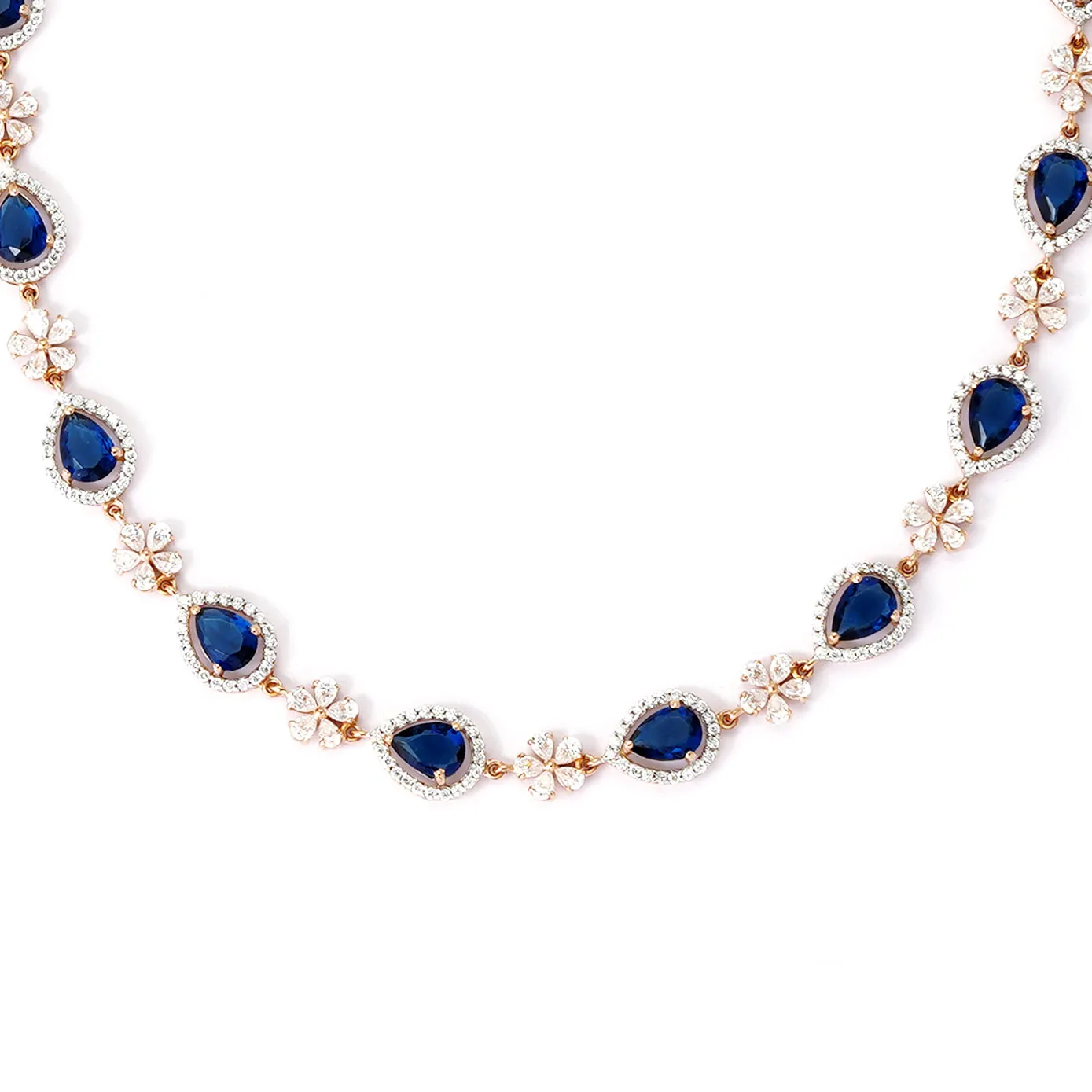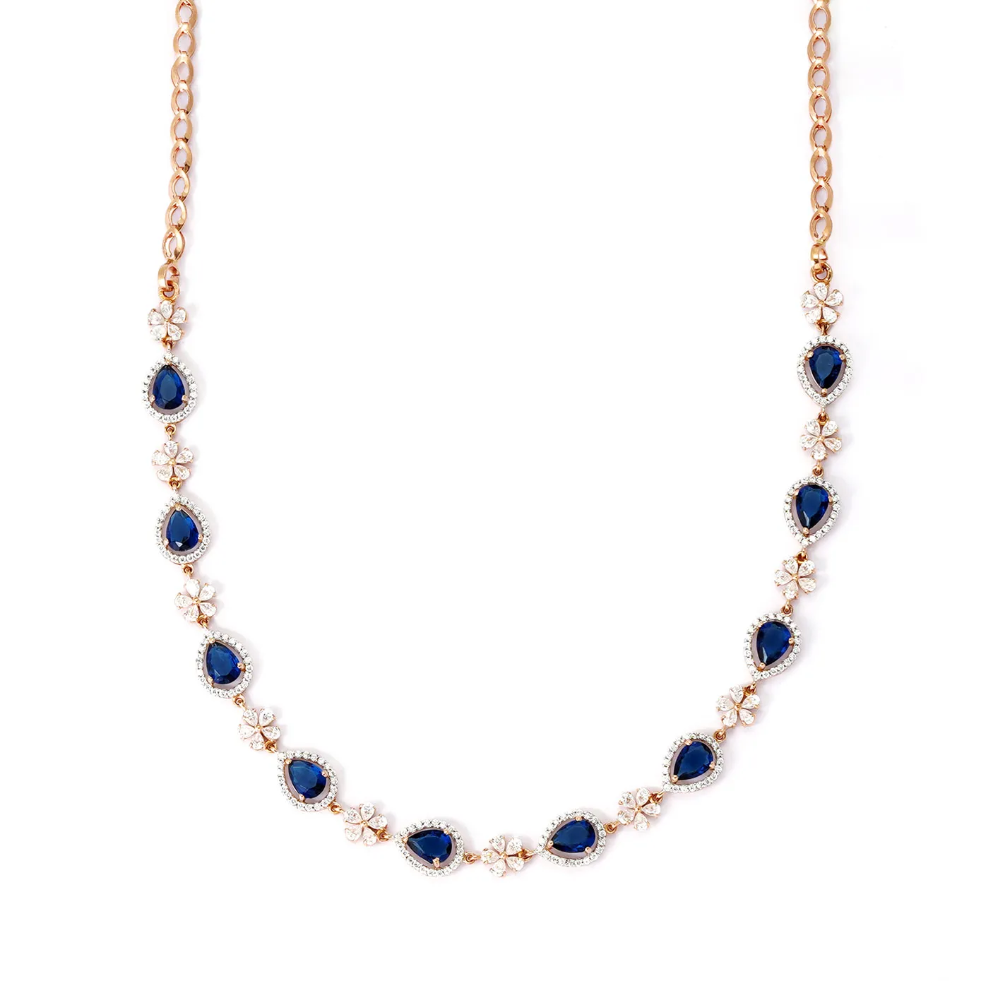 The zircons and blue stones serenely illuminate the rose gold, which instantly puts your mind in a tranquil state. There is an elegance that lusters its way to show the jewel’s prominence.