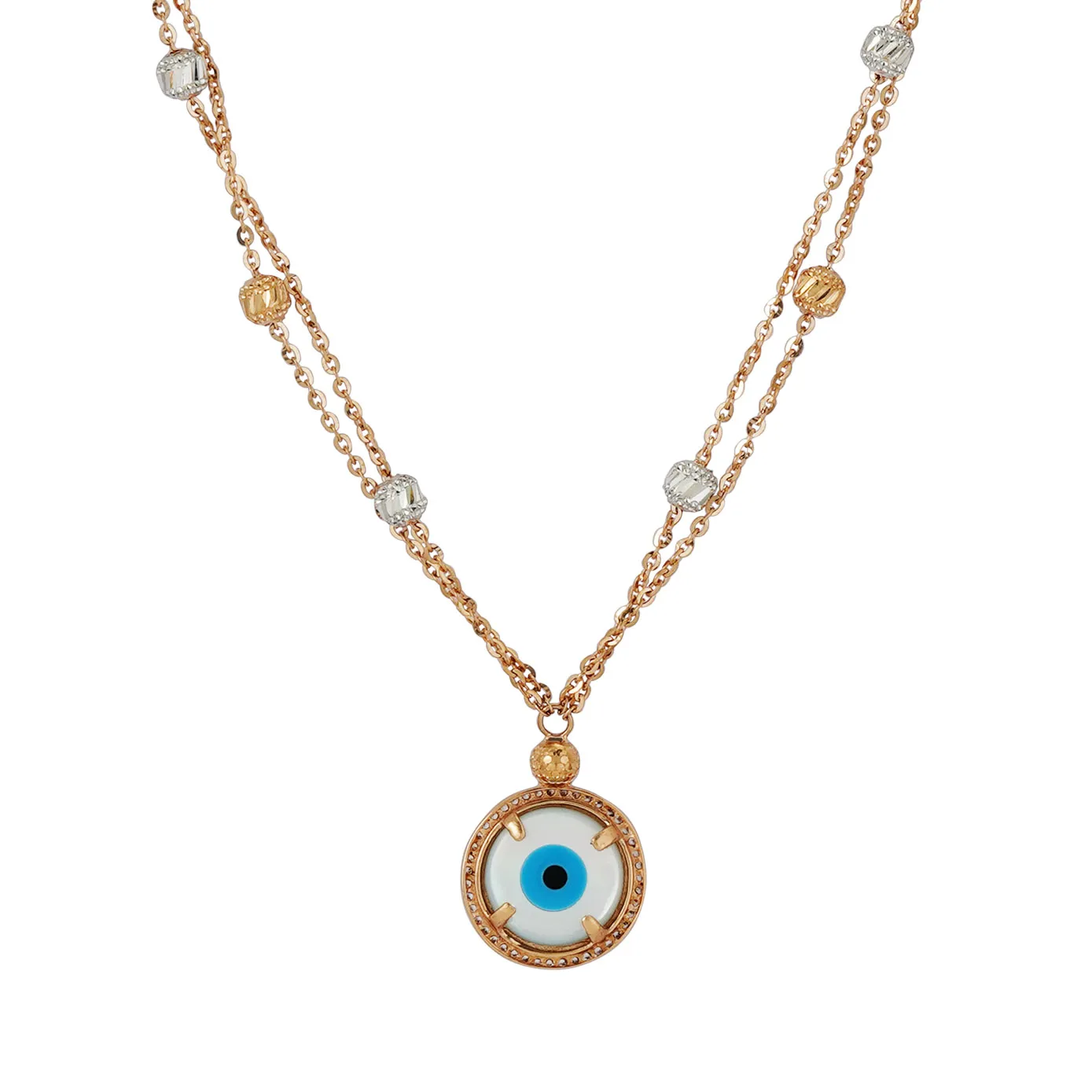 Ward off those bad eyes with this evil eye amulet that comes with rose gold. Wear this specially designed 18k rose gold rolo chain beaded with rose gold and rhodium beads, along with evil eye pendant daily and do not fear others' ill intentions, as this is believed to keep them away from you.