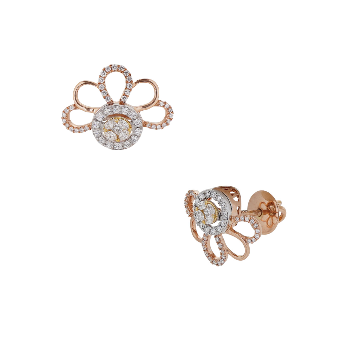 A pretty semi-flower is seen blooming to its fullest, each consecutive petal decorated with diamond-like raindrops. The rose gold combination gleams with a soft glow that is sure to take your breath.