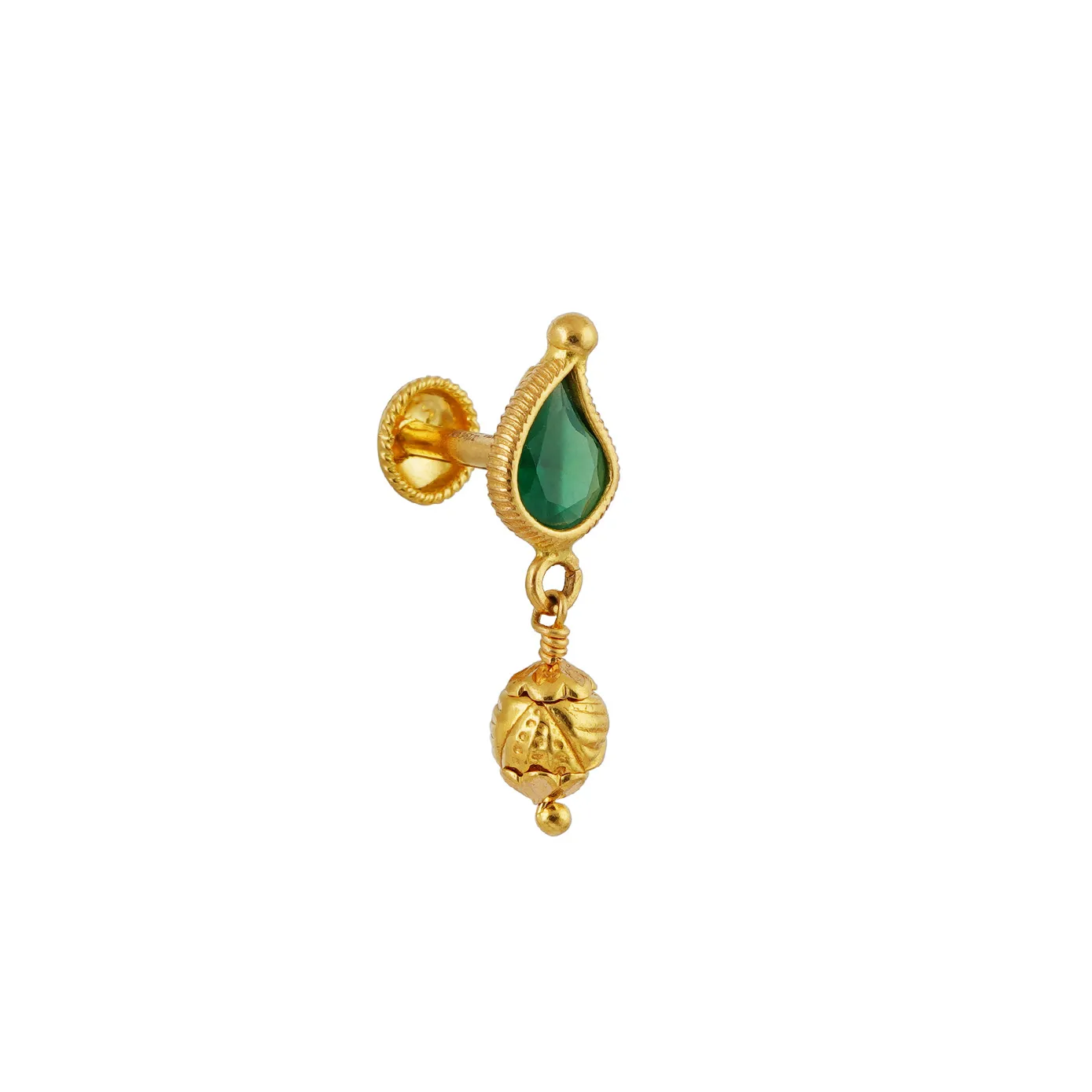 Single emerald stoned leaf surmounted on a golden globe drop will be an excellent selection to your fashion sense.