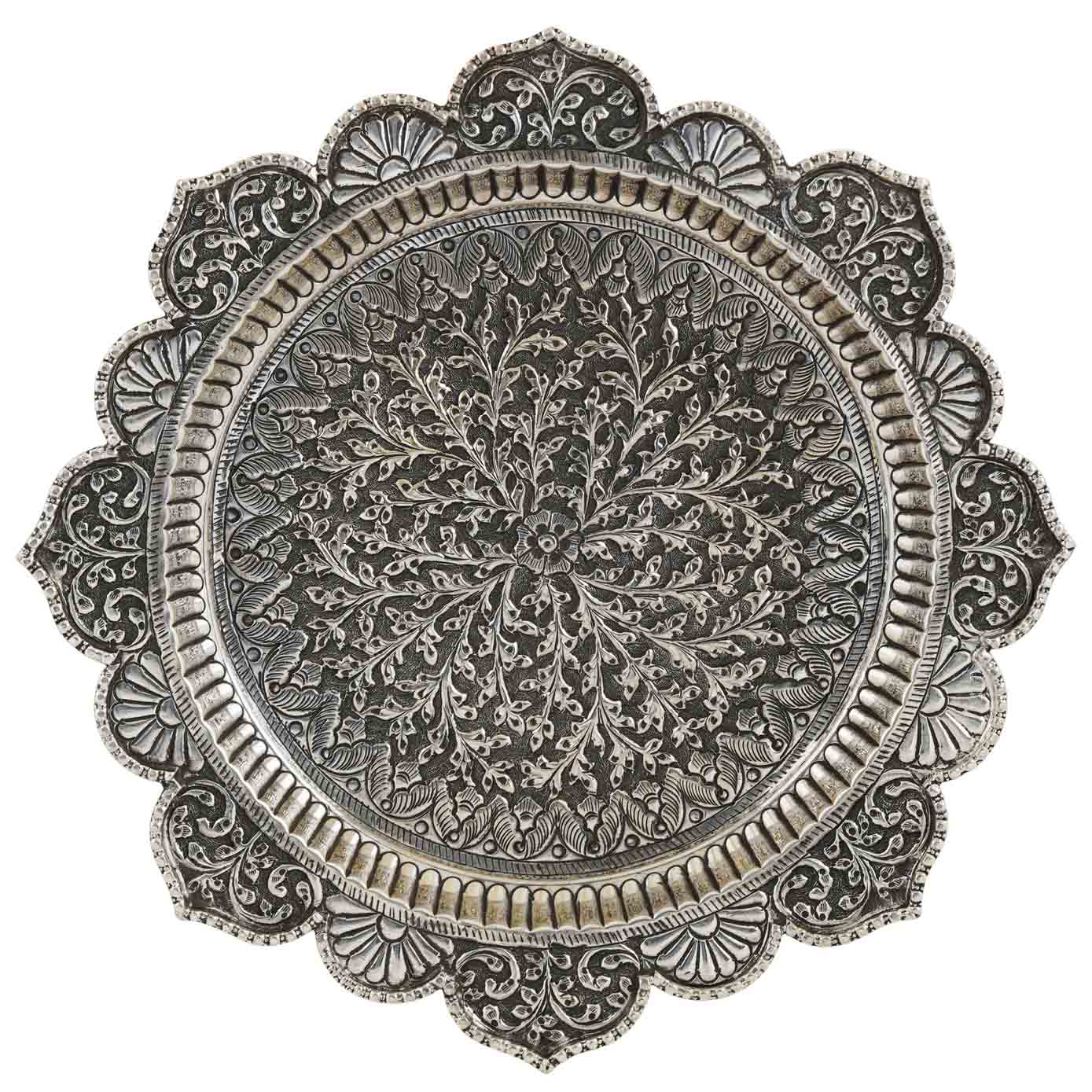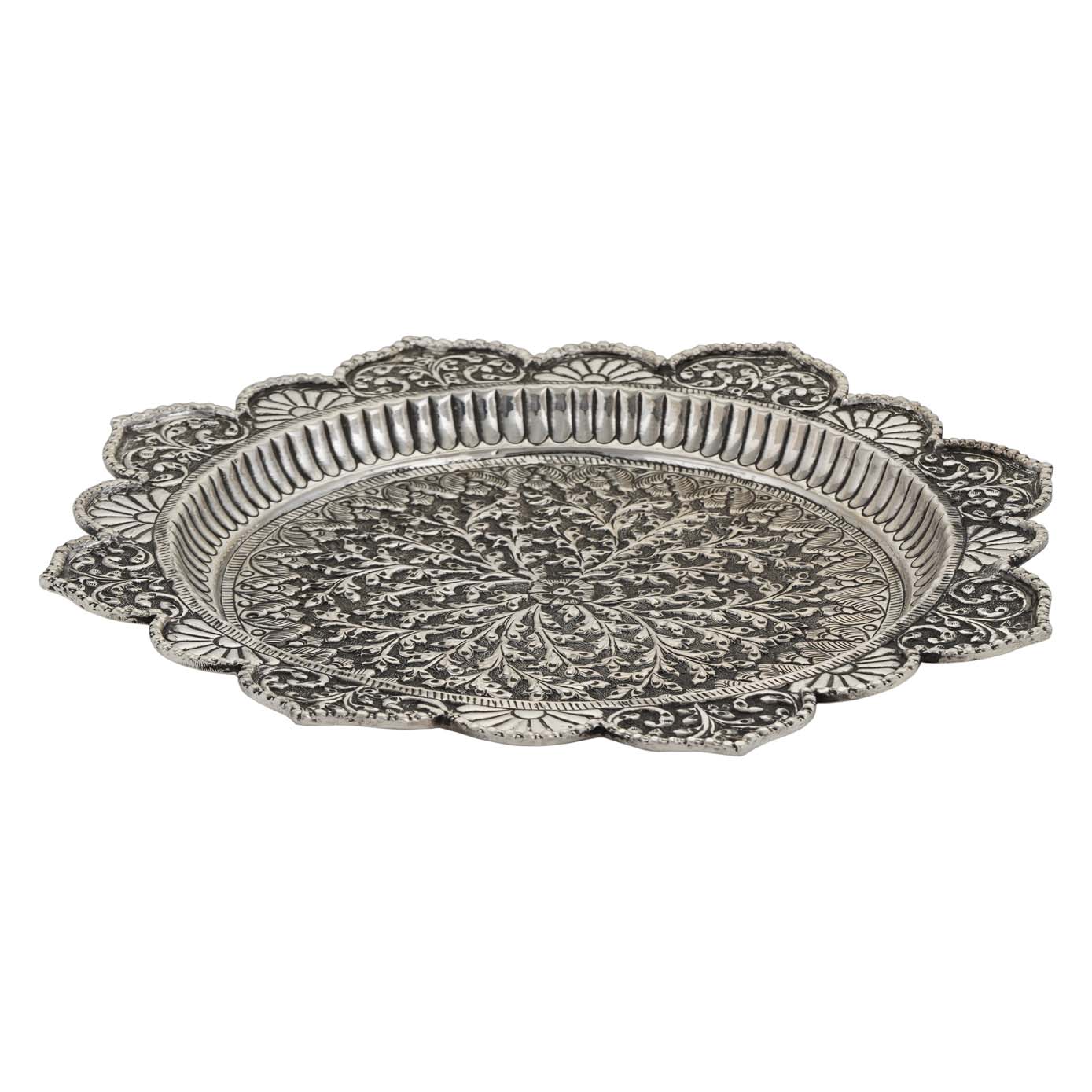 Antique Tray with a lot of floral inscriptions and the workmanship simply speaks with its amazing design and to be unique the outer rim of the plate is designed in traditional Mural method with floral and leafy vines all over the plate.
