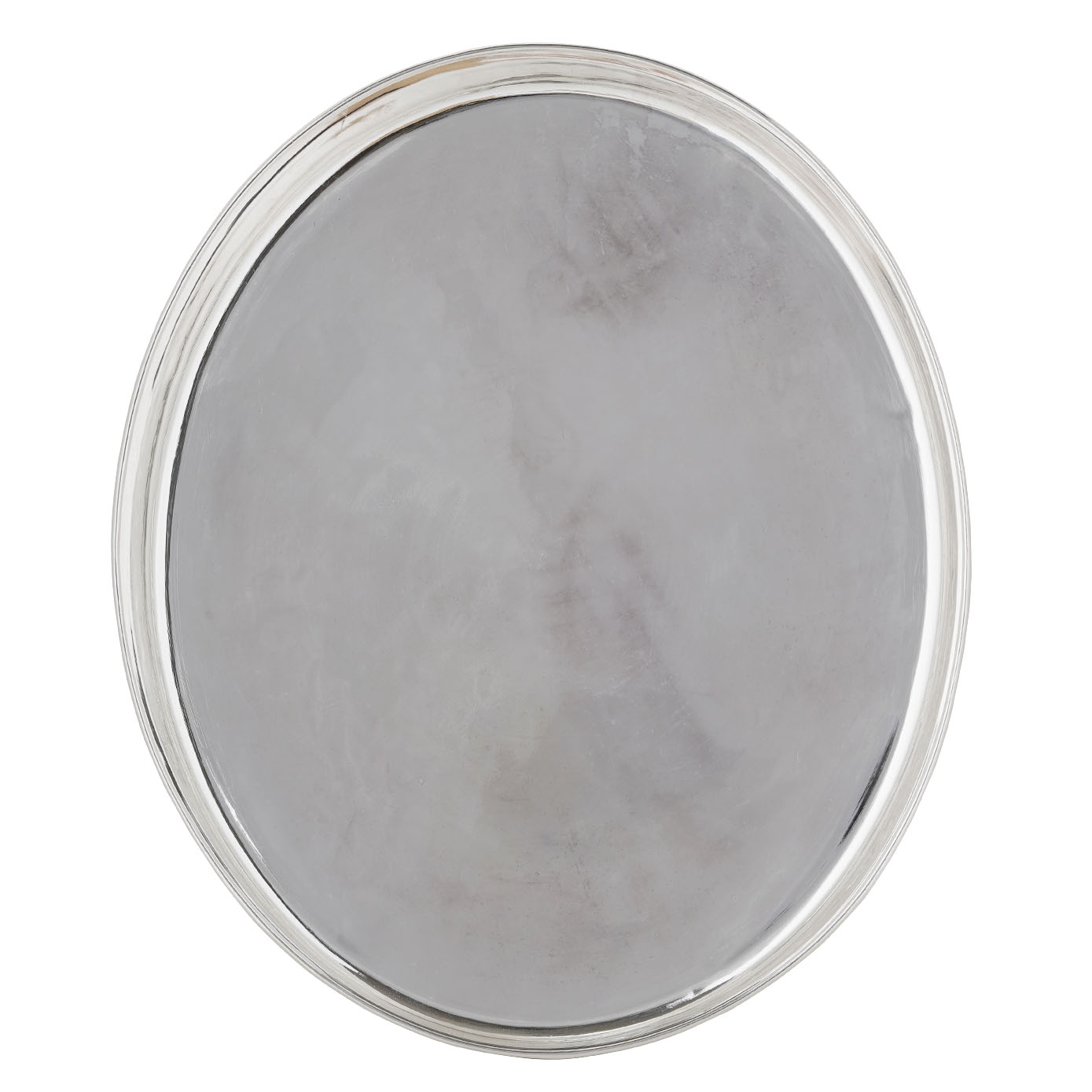 A plain oval silver plate with heavy structure and makes it to be more special for its simple regular design and its obvious that it guards your health too.