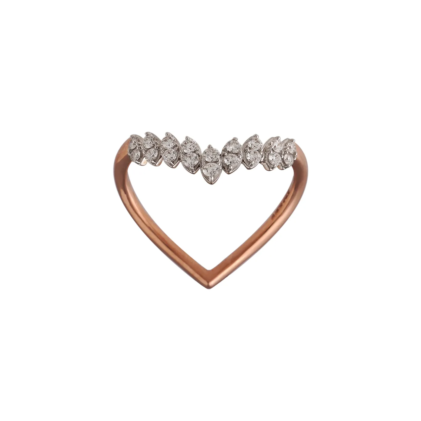 Unlike the typical rings with hearts in them, this ring is entirely made in the shape of a heart, with diamonds arranged on one side. A unique and sleek piece in the diamond collection that attracts attention without much effort.