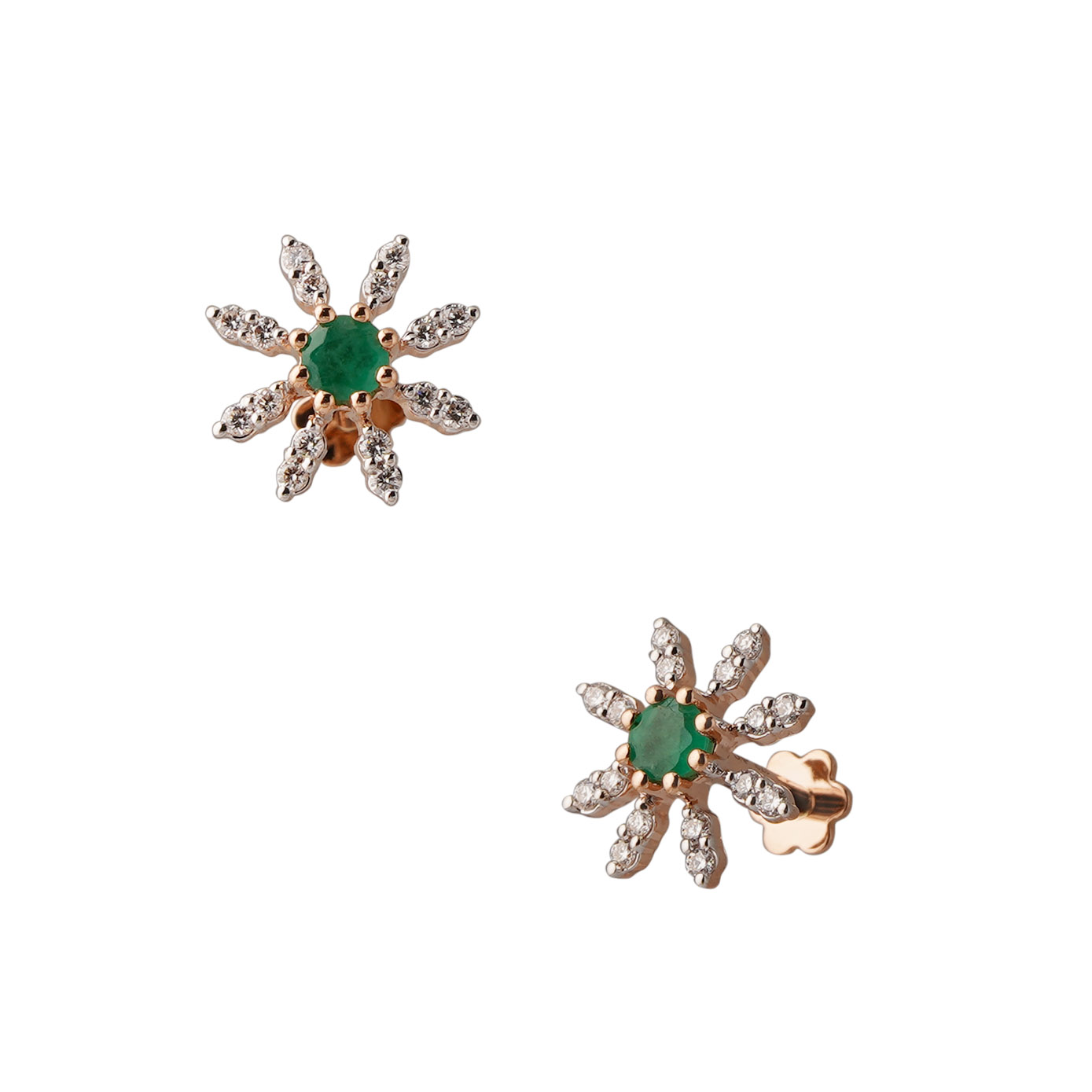 Introducing our captivating Floral Nose Pin—a delicate and radiant adornment designed to enhance your natural beauty with a touch of sophistication. Crafted with exquisite attention to detail, this nose pin features a charming floral shape that evokes the beauty of nature. The petals of the flower are meticulously studded with shimmering diamonds, each one sparkling with brilliance and elegance. At the center of the floral motif lies a vibrant emerald, adding a pop of color and a sense of regal charm to the design. Crafted from the finest materials and designed to complement your unique style, this nose pin is the perfect accessory to add a touch of glamour to any ensemble. Whether worn alone as a statement piece or paired with other favorites for a more personalized look, our Floral Nose Pin is sure to captivate hearts and turn heads with its exquisite craftsmanship and timeless allure.