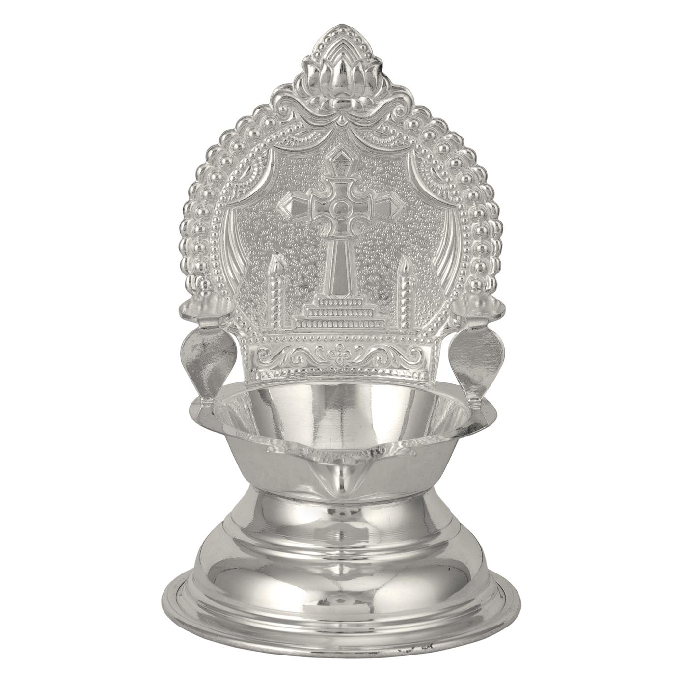 The Holy Jesus just showers his blessings on all his children with mercy. This beautifully carved silver vilakku with the holy cross on it will be an apt article to wish for his mercy.