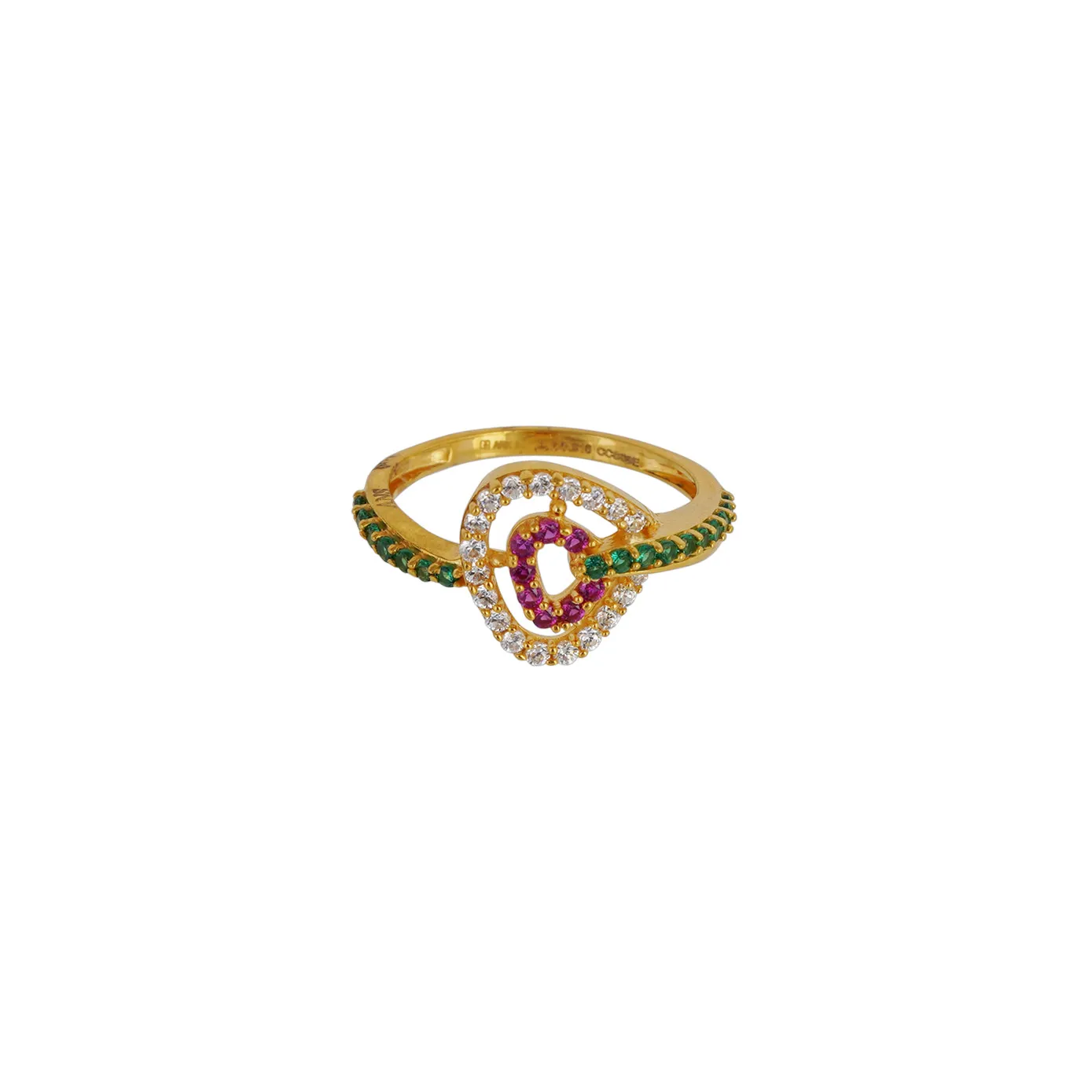 A little golden beauty studded with colorful tri color stones on them with a unique design on it.